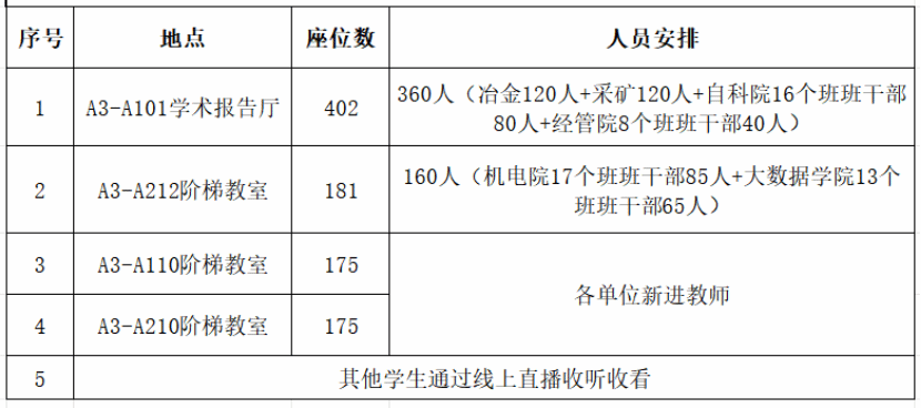 3.教工部、学工部及各学院协助做好师生的组织工作,提前15分钟在会场就座。