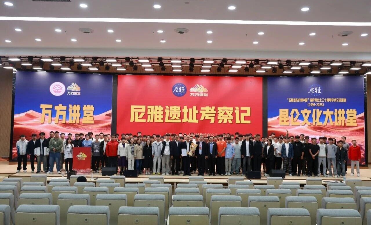 在“五星出东方利中国”锦护臂出土三十周年之际,原中国国家博物馆艺术品鉴定中心主任、研究员,著名文物艺术品鉴赏家,1995年尼雅联合考古队中方队长岳峰教授受邀走进学校“万方讲堂”,为师生讲述尼雅遗址考察的岁月,有形有感有效铸牢中华民族共同体意识。