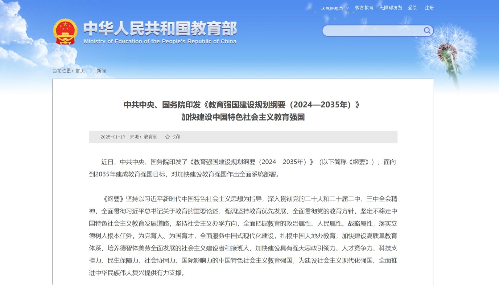 中共中央、国务院印发《教育强国建设规划纲要(2024—2035年)》 加快建设中国特色社会主义教育强国