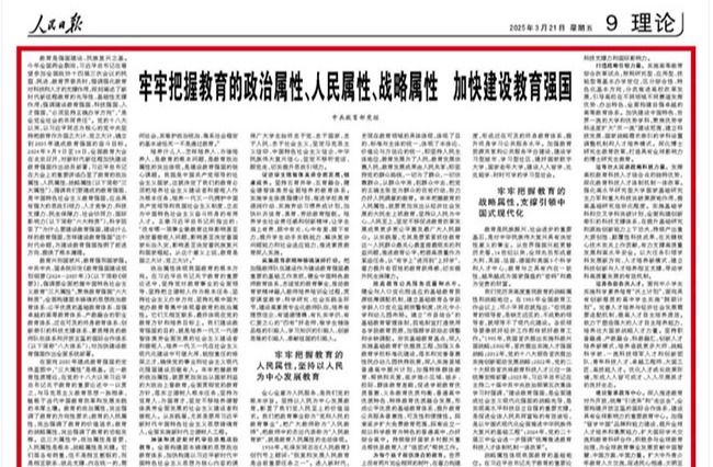 中共教育部党组《人民日报》撰文:牢牢把握教育的政治属性、人民属性、战略属性 加快建设教育强国