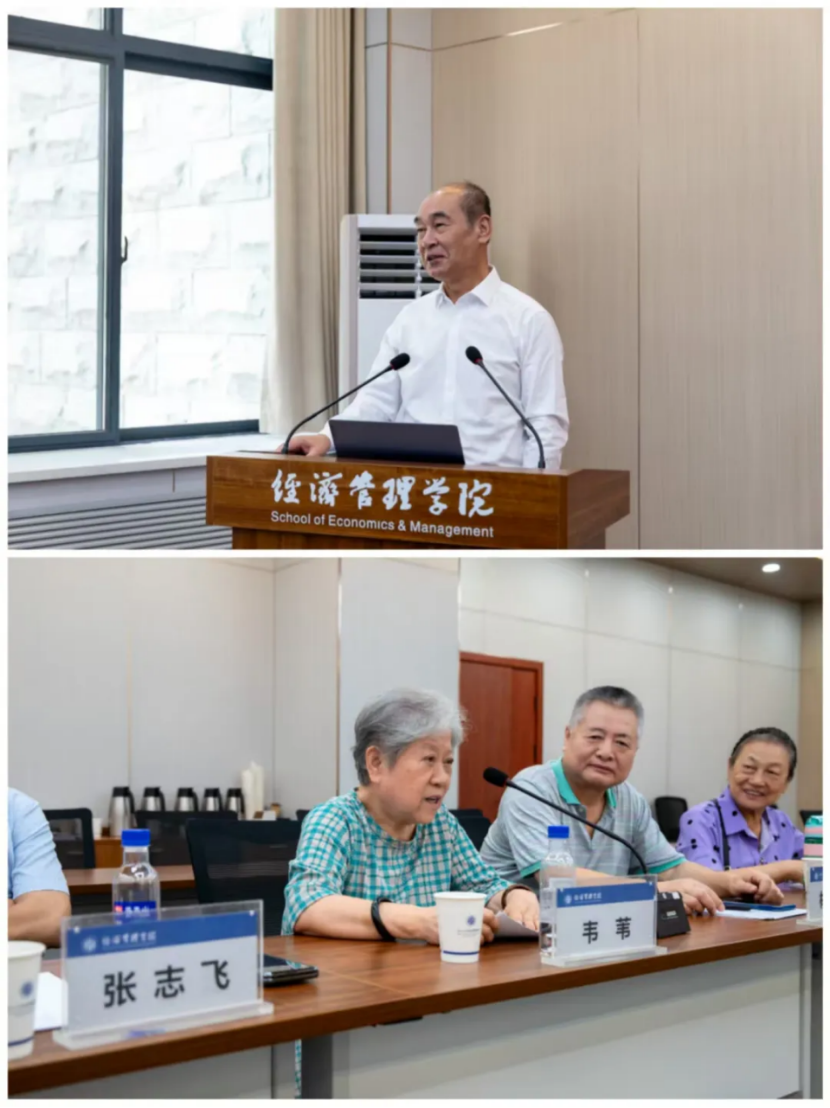 教师代表王忠民、韦苇分别发言。两位老师回顾从老经济系到经管学院的变迁与发展过程,强调何炼成等老一辈经济学家的卓越贡献,分享与校友们在大学期间朝夕相处的点点滴滴和轶闻趣事,赞扬每位校友所取得的成就并以他/她们感到骄傲。最后,两位老师祝福学院的未来更加美好,培养出来更多的经管人才。