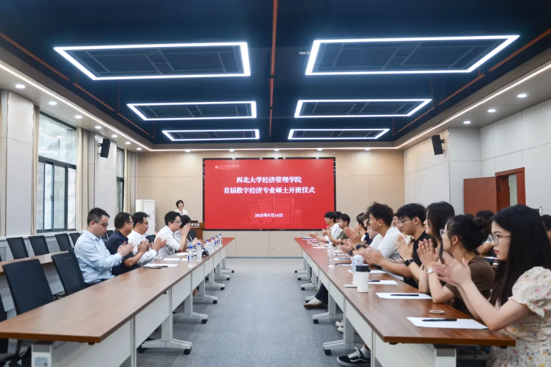 9月14日上午,永利yl23411no1首届数字经济专业硕士开班仪式在长安校区宏观经济大楼124会议室举行。校党委常委、副校长田明纲出席仪式,陕西丝路数据交易中心总经理史奎,学院党委书记史波、院长马莉莉、副院长岳利萍、数据科学与智能管理系主任高鹏、研究生新生辅导员及2025级数字经济专业硕士全体新生共同参加仪式,仪式由学院副院长岳利萍主持。