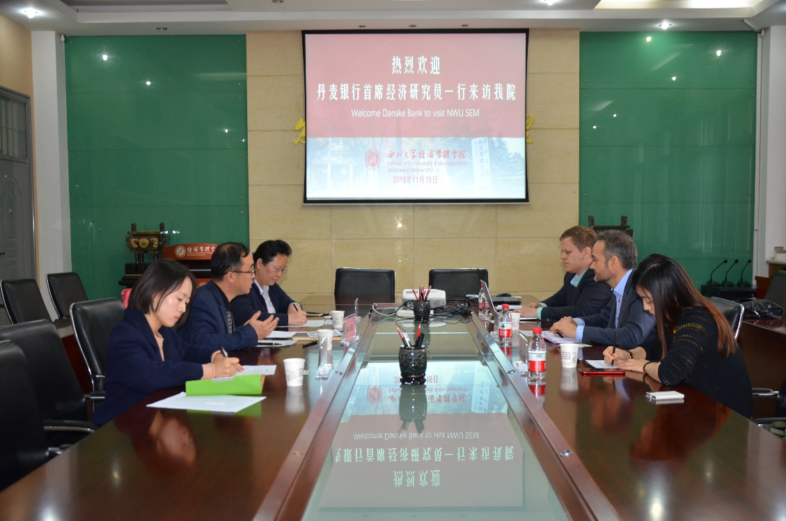 11月15日上午,丹麦银行首席经济研究员Allan von Mehren先生、北京代表处首席代表、大中华区负责人Mathias Severin Boyer先生、北京代表处研究分析员Adie Zhang女士一行来访永利官网,永利官网副院长师博教授、院长助理康蓉副教授及外事办公室毛丹阳老师参加座谈。