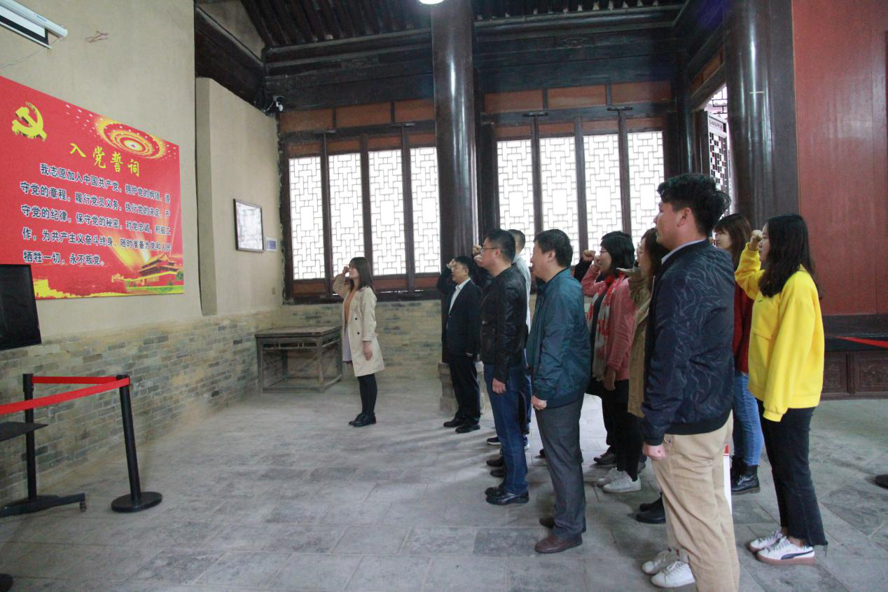 参观活动结束后,由学院博士生党支部书记轩梦月领誓,全体党支部书记全体肃立,右手握拳,在先辈们工作过的地方面对着党旗重温入党誓词。