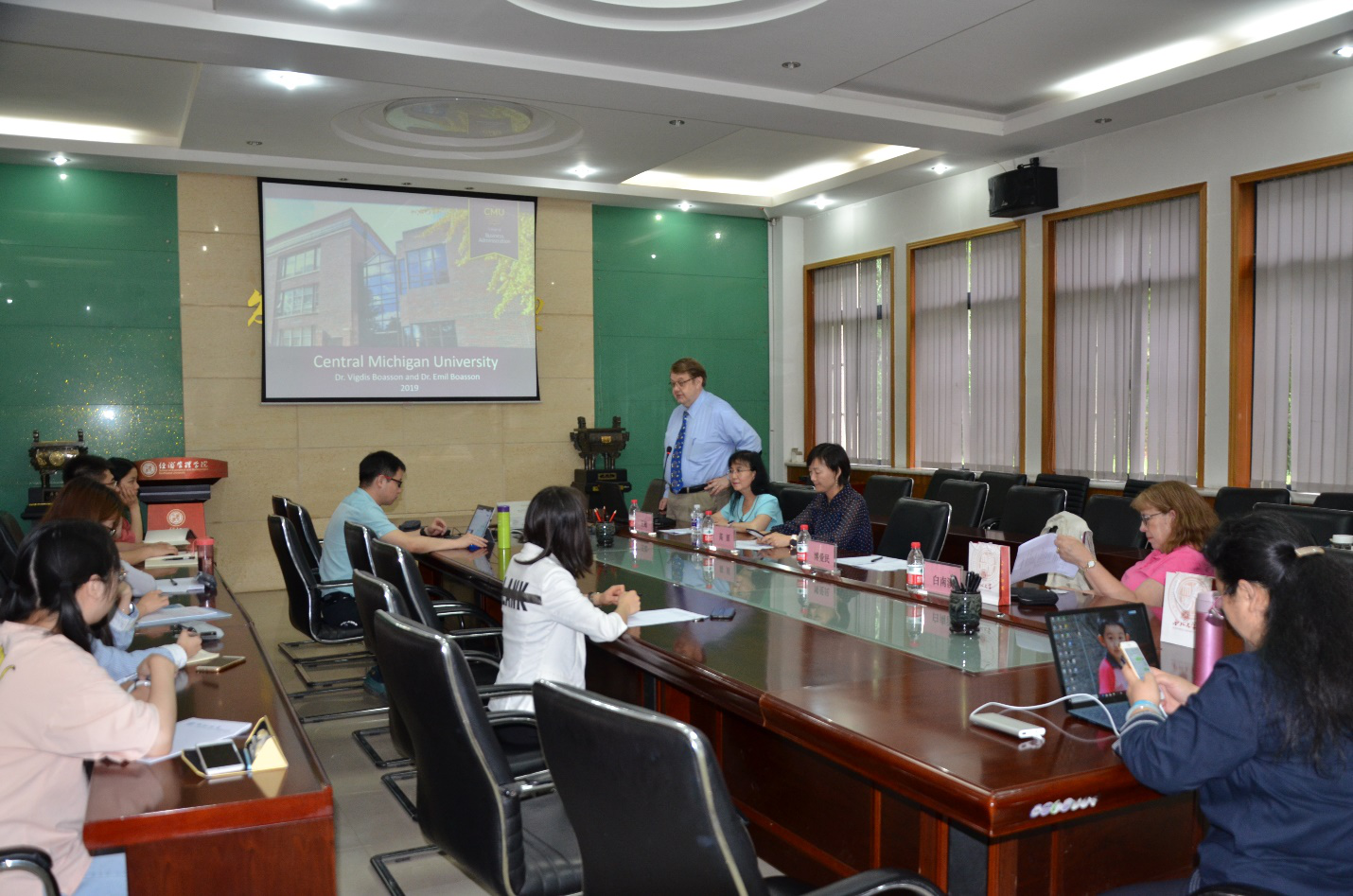 6月28日,中密歇根大学商学院工商信息系统教授Emil Boasson、金融和法律系法律教授Nancy White、金融和法律系金融教授Vigdis Boasson来访永利官网,与院长吴振磊教授、信息管理与信息系统系副主任高鹏副教授、实验中心主任高原副教授、院长助理康蓉副教授及学校国际项目管理办公室刘园老师召开座谈会。首先,双方介绍了各自学院的基本情况。中密歇根大学是一座历史过百年的美国州立综合性大学,其领域涉及工商、教育、医疗等各个方面。之后,Emil Boasson教授重点介绍了其优势学科——商业信息系统科学硕士(MSIS)及其培养内容为企业资源规划软件SAP,高原副教授也介绍了永利官网在该领域的教学工作开展情况,双方商定以此为基础,进行师资、学生、科研等领域的合作。随后双方又就具体合作内容与方式做了进一步沟通。