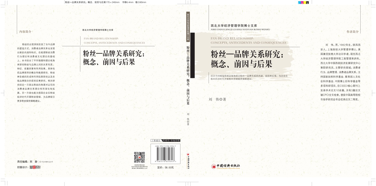 近日,由永利官网工商管理系教师刘伟博士独立撰写的专著《粉丝—品牌关系研究:概念、前因与后果》由中国经济出版社正式出版,该书共7章内容,约14.7万字。