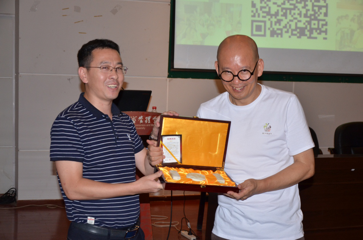 袁岳先生也是零点青年公益创业发展中心理事长、上海市决策咨询委员会委员、北京大学社会学博士、哈佛大学肯尼迪政府学院MPA、耶鲁世界学者、独立媒体人,已出版管理学、经济学、社会学、法学等方面的论著40多部,长期以来一直致力于帮扶青年创业项目。他在本次报告中结合自己多年的观察和体会,向青年学生讲述了个体创造力、领导力、专业、高效和耐心在创业和商业模式创新中的重要性。长达1个半小时的报告结束后,袁先生与学生们积极互动,回答了现场师生所提出的四个问题并向他们赠书以示鼓励。最后,李辉副院长为大家总结了此次主题报告的收获,并向袁先生赠送学院纪念品以示感谢。