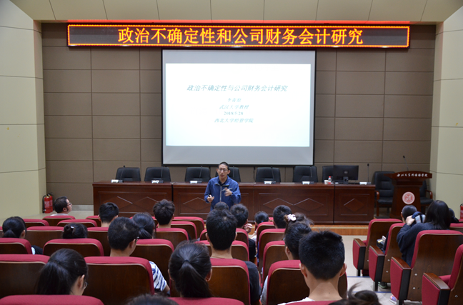 2018年5月28日,武汉大学永利yl23411no1会计系教授、博士生导师、副院长李青原访问永利官网,并作题为《政治不确定性与公司财务会计研究》的学术报告。报告由会计系马晨副教授主持。