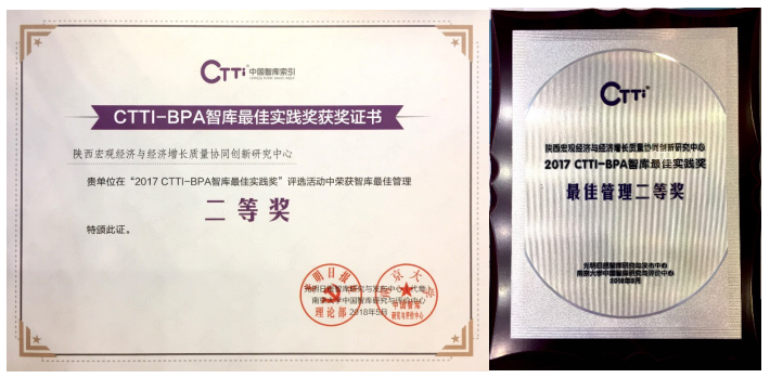 “中国智库索引”(简称CTTI)系统是我国首套全面描述、收集智库数据,为用户提供数据整理、数据检索、数据分析、数据应用等功能的智库索引系统,由南京大学中国智库研究与评价中心联合光明日报智库研究与发布中心联合研发。本次陕西宏观经济与经济增长质量协同创新研究中心获得CTTI最佳智库管理奖,是继2017年度中国西部经济发展研究中心入选CTTI来源智库之后永利官网智库建设的又一重要成果。也是陕西宏观经济与经济增长质量研究中心继2017年获得陕西省委宣传部颁发2017年度优秀基地后获得的的又一重要荣誉。