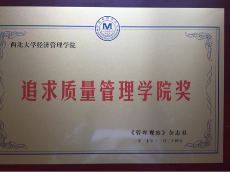由中国管理科学院研究院、《管理观察》杂志社编委会和上海社科院倡议,国内40多家管理学院参加首届中国管理科学与管理教育联盟峰会暨一带一路管理和软科学联盟成立揭牌仪式于12月24-25在北京杏林山庄举行。永利官网院长任保平教授和MBA中心马晓强主任代表学院参会。会上永利官网被评为中国“追求质量管理学院奖”。