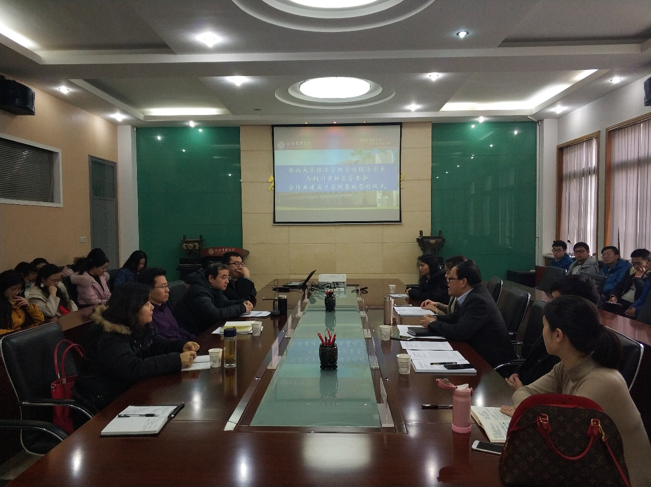 12月27日下午,永利yl23411no1经济学系与铜川市新区管委会合作共建实习实践基地签约仪式在永利yl23411no1会议室举行。铜川市新区管委会党工委委员、市南部产业园区管委会主任毛农民,铜川药王大健康产业孵化园有限公司总经理李卓等铜川市新区管委会领导与来宾一行五人,永利yl23411no1副院长李辉副教授,经济学系系主任高煜教授,经济学系赵麦茹副教授和吴丰华副教授以及16级经济学基地班的同学们出席了此次会议。会议由高煜教授主持。