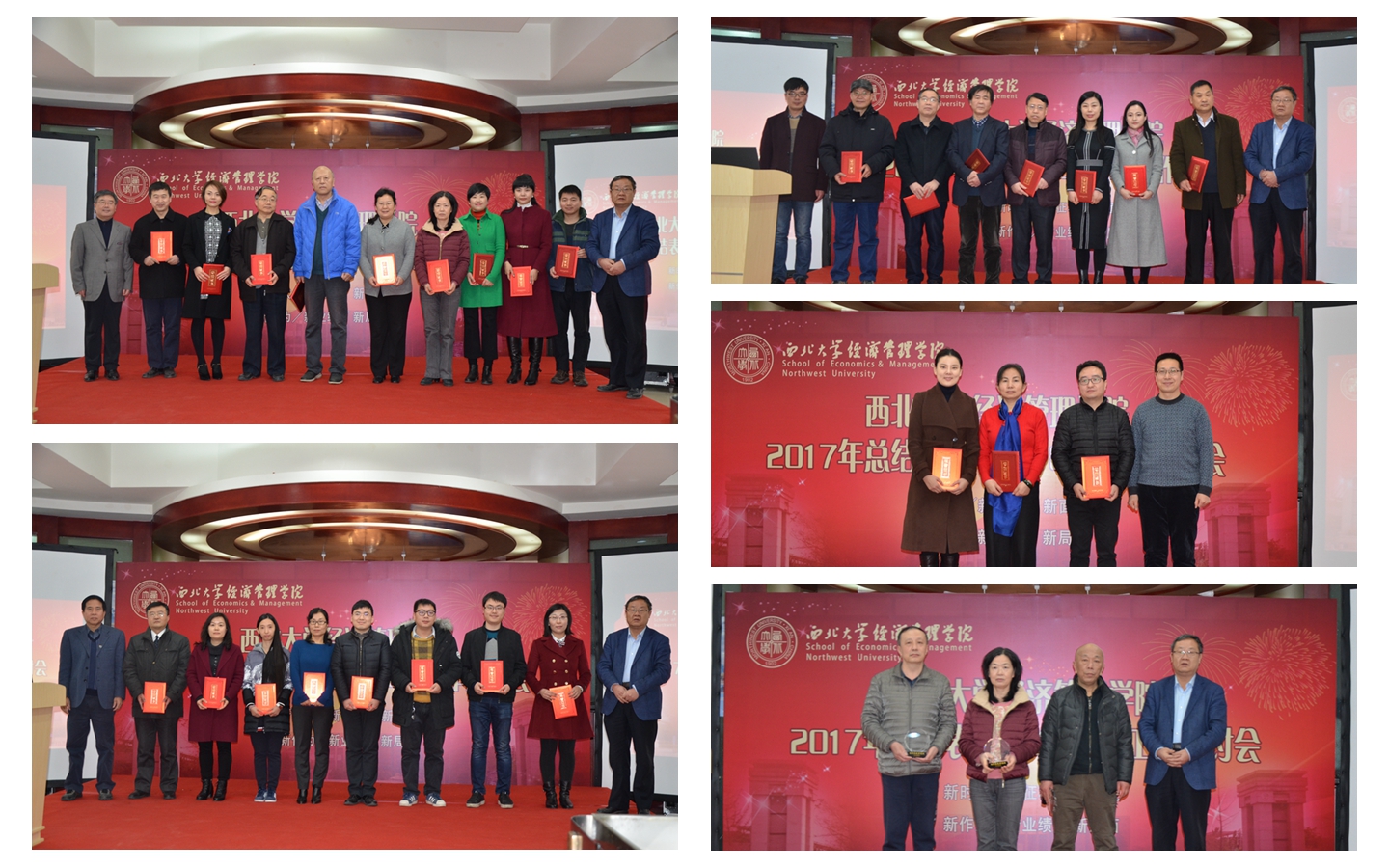 在颁奖活动中,校长郭立宏、校党委副书记副校长贾明德、研究生院副院长徐哲峰、校教师党委工作部部长曹振纲和院长任保平分别为学院2017年度十大本科教学能手、2017年度十大科研能手、2017年度十大优秀研究生导师和2017年度优秀行政人员颁发了获奖证书,为2017年退休教师颁发了光荣退休纪念牌。颁奖仪式由院党委书记杜勇主持。