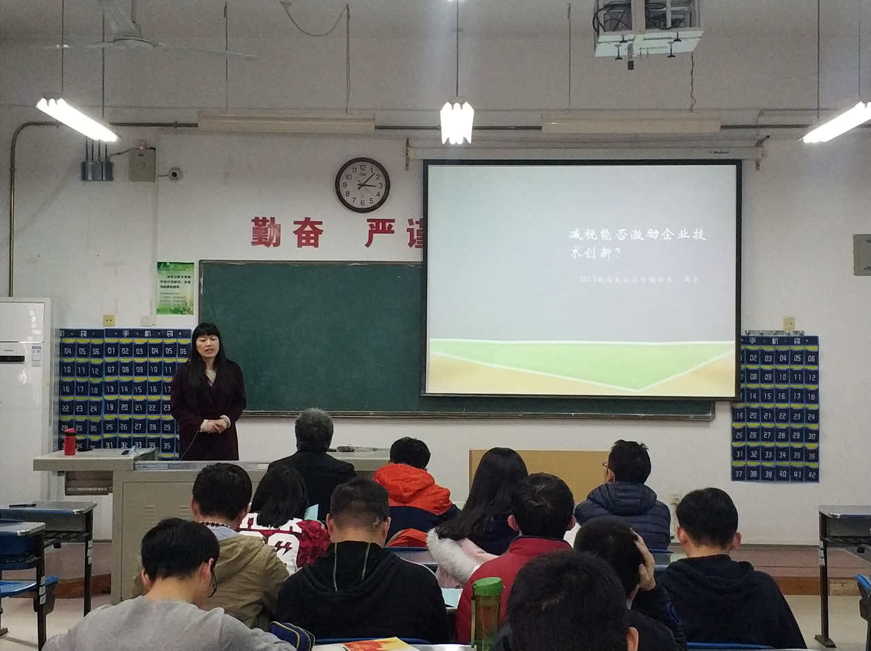 “基地学术课堂”的第一单元为现代经济学理论与方法创新论坛第十三卷第十期,由永利yl23411no1周宇博士研究生对题为《减税能否激励企业技术创新?——基于价值链中国工业企业行业异质性的门槛效应分析》的论文进行了报告。该文从工业企业2007年-2014年行业面板数据确定门槛的个数以及模型的形式,进而检验财税政策对企业技术创新的非线性影响。研究发现,减税政策显著地促进了企业技术转换效率和技术转化效率的提升,减税政策具有明显的行业异质性特征。这对制定和实施促进企业技术创新的减税政策乃至具体的减税方案都有一定的指导意义。