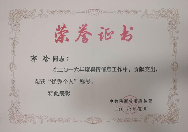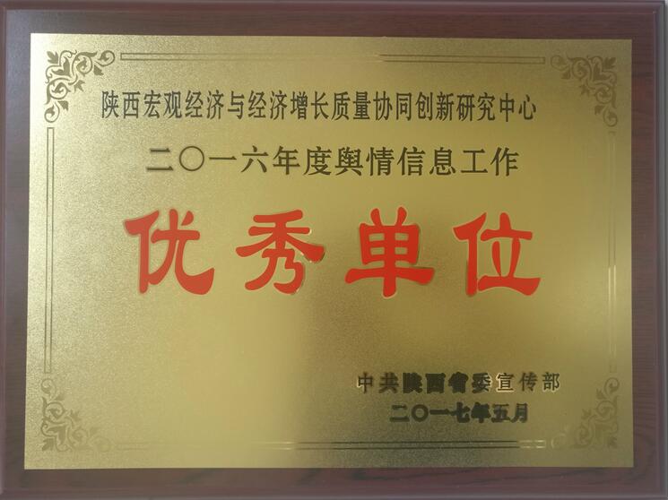 由永利官网任保平教授担任首席专家和负责人的陕西省首批哲学社会科学重点研究基地——陕西宏观经济与经济增长质量协同创新研究中心,在2016年的舆情信息研究报送工作中,贡献突出,积极发挥学科优势,充分发挥了社科研究机构作为智库对政府的决策服务作用,被评为2016年陕西省舆情信息工作“优秀单位”。永利官网青年教师、中心研究人员郭晗博士被评为2016年陕西省舆情信息工作“优秀个人”。本次表彰共有10家单位获得“优秀单位”荣誉,其中,在陕西省15个哲学社会科学重点研究基地中,共有2个研究基地获得“优秀基地”荣誉。这些优秀单位通过省委宣传部报送的《舆情参阅》共有103篇被中宣部采用,有13篇受到中央主要领导同志批示。