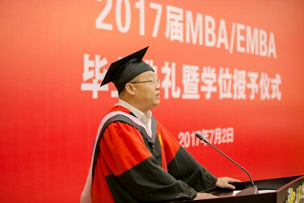 学位授予仪式上,校研究生院李军副院长宣读了校学位委员会的学位授予决定。王正斌副校长、任保平院长为获得学位证书的345名MBA/EMBA毕业生拨穗正冠、颁发证书并握手合影留念。最后,永利yl23411no1院长任保平教授发表讲话,他向所有毕业提出了三点要求:一是要志存高远、脚踏实地;二要努力学习、开拓创新;三要脚踏实地、知行合一。他说,希望同学们怀揣新的梦想,勇担时代责任,用自己的知识、能力、思想和境界服务社会、造福人类、引领未来,去实现那份让母校和大家共同期待的精彩。