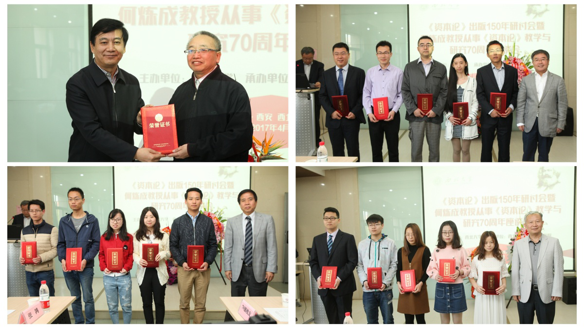 学校领导为第四届“何炼成奖”获奖人员颁奖