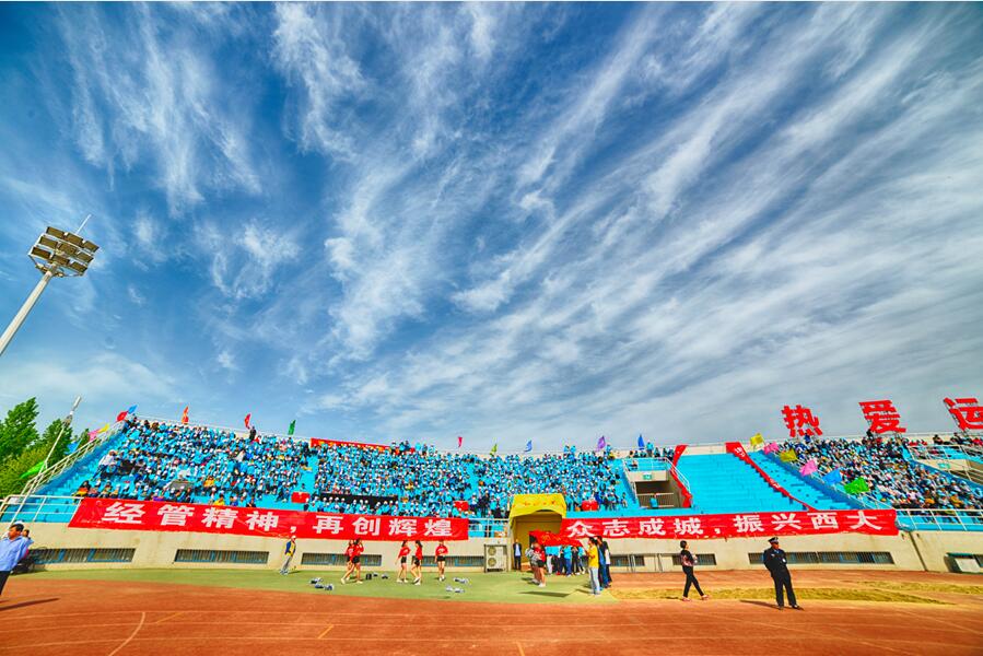 4月19日下午,在运动会开幕式上,学院领导班子全体成员和全体教工组成了全校规模最大的教工方阵。这个由一百多位教工组成的方阵,带着全体经管人由衷的自豪感和一往无前的气概,排着整齐划一的队形,踩着坚实有力的步伐,喊着响彻云霄的口号,在全校师生的注目下精神抖擞地绕运动场一周,并接受学校领导的检阅,受到了一致的好评。