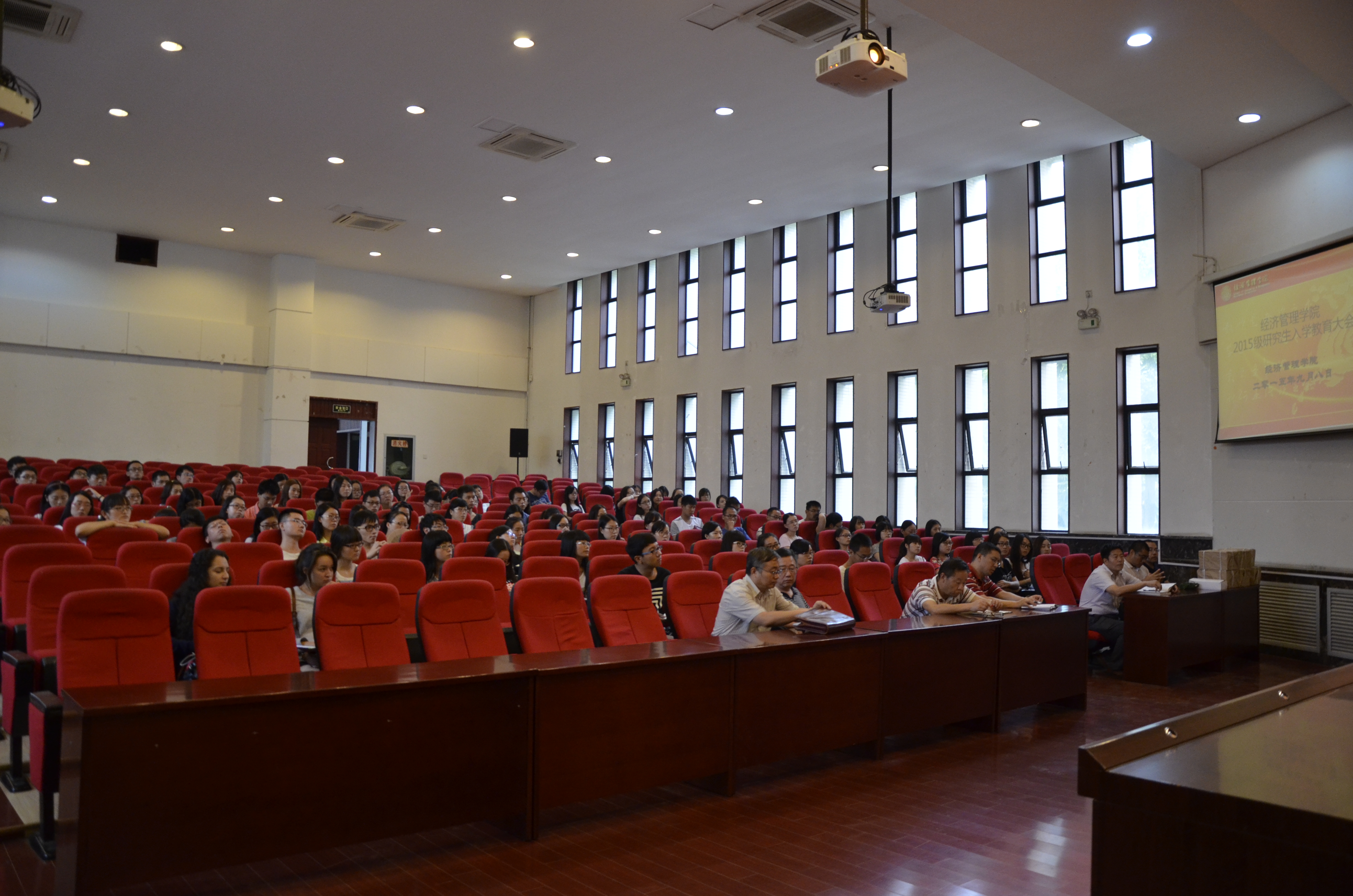 9月8日下午,学院2015级研究生入学教育会在金海恒业报告厅举行。院长任保平教授、院党委书记李国良、金融系主任王满仓教授、会计系主任冯均科教授、校研究生院教育管理科干部王全伟出席了会议。会议由学院党委副书记李一凡主持,研究生教务员、辅导员及2015级全体研究生一百余人参加。