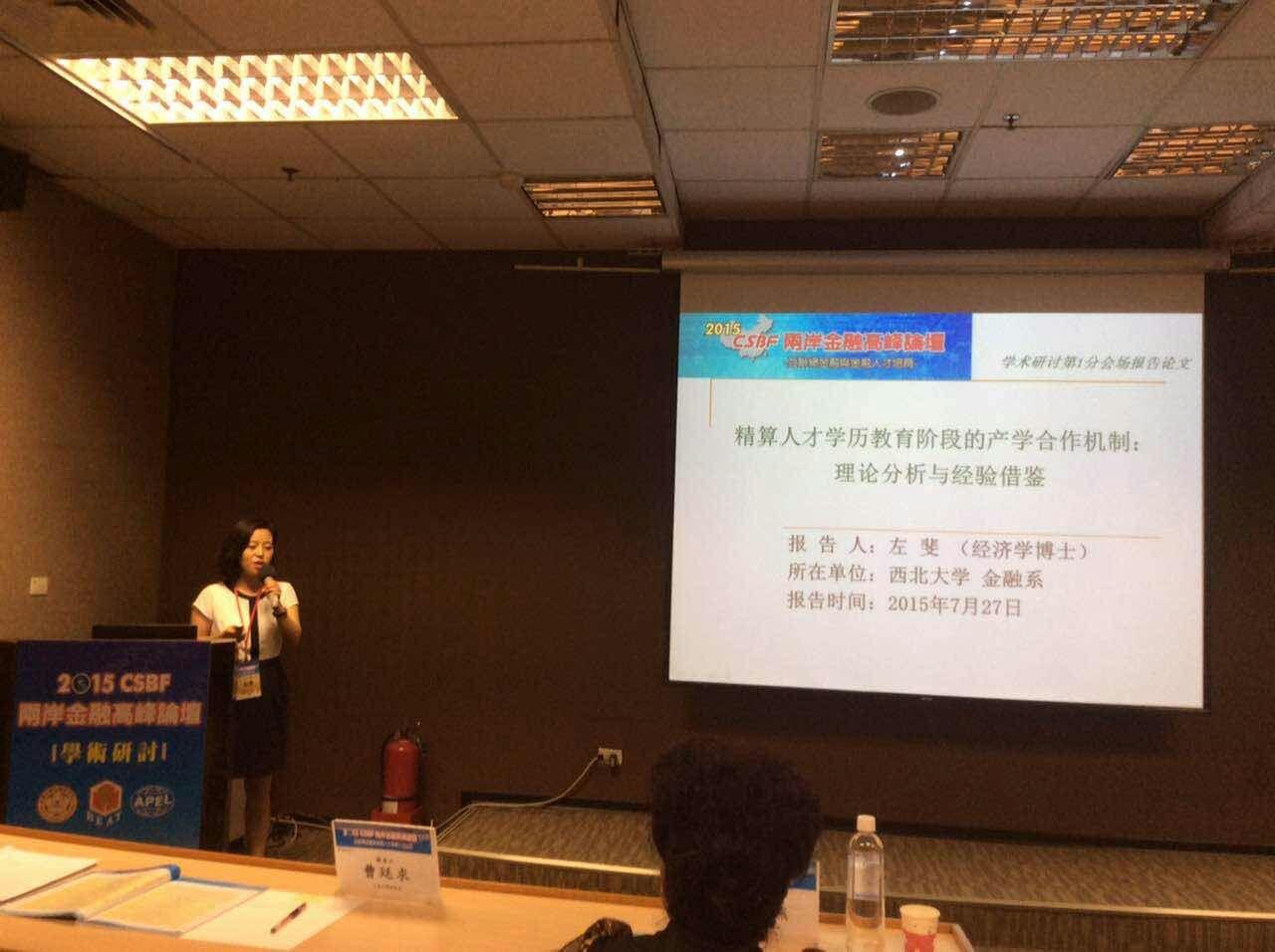 2015年7月27日至7月30日,由台湾大学金融研究中心、财经立法促进院及台湾金融教育协会共同主办,台湾金融理事会协办的2015 CSBF两岸金融高峰论坛于台北召开。永利官网金融系王满仓教授、韩锦绵副教授和左斐博士三位教师提交的论文经过评审筛选获邀赴台参加,并发表学术演讲,王满仓教授还被邀请作为学术论文分会场主持人出席大会。