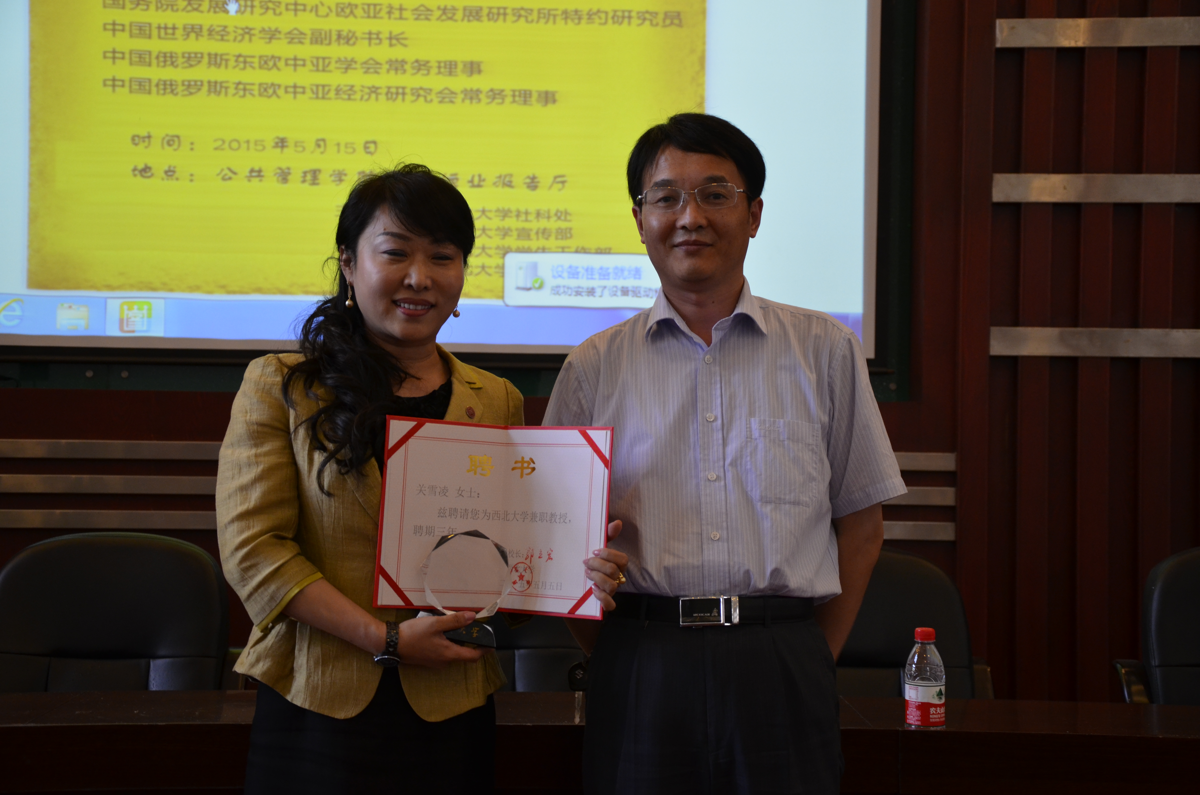 人事处张远军处长为关雪凌教授颁发永利yl23411no1兼职教授聘书