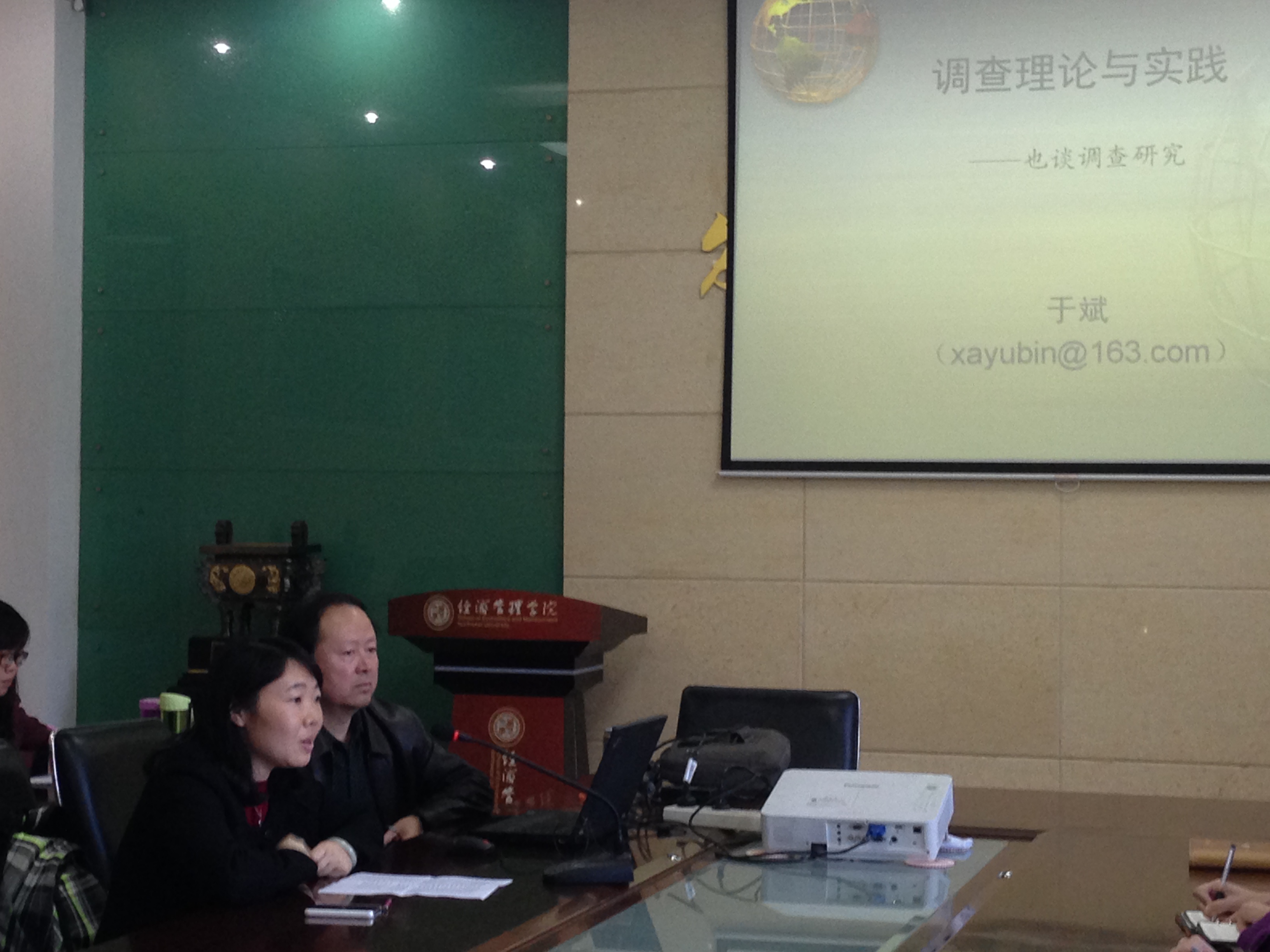 抽样理论与方法作为统计学的重要节点性技术,已成为学者获取数据信息的最主要方式之一。科研工作不仅需要具备调查研究的基本能力,而且要掌握一些搜集数据和处理数据的工具,以合理解释和测度复杂经济社会现实。因此,永利yl23411no1社会调查与数据中心和经济类教师学术沙龙邀请西安财经学院调查咨询中心主任于斌副教授为永利官网师生做有关调查研究方面的主题报告。本次沙龙也是社会调查与数据分析中心系列学术报告(一)和研究生学术月活动专家讲坛(七)的系列活动之一。沙龙由社会调查与数据中心副主任王莉副教授主持。