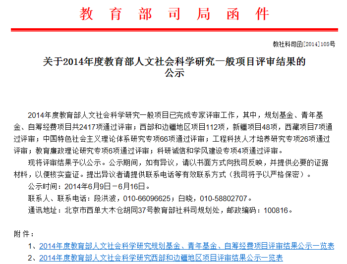 日前,教育部对2014年度教育部人文社会科学研究项目评审结果进行了公示,永利官网5位青年项目教师申报的项目获批立项。