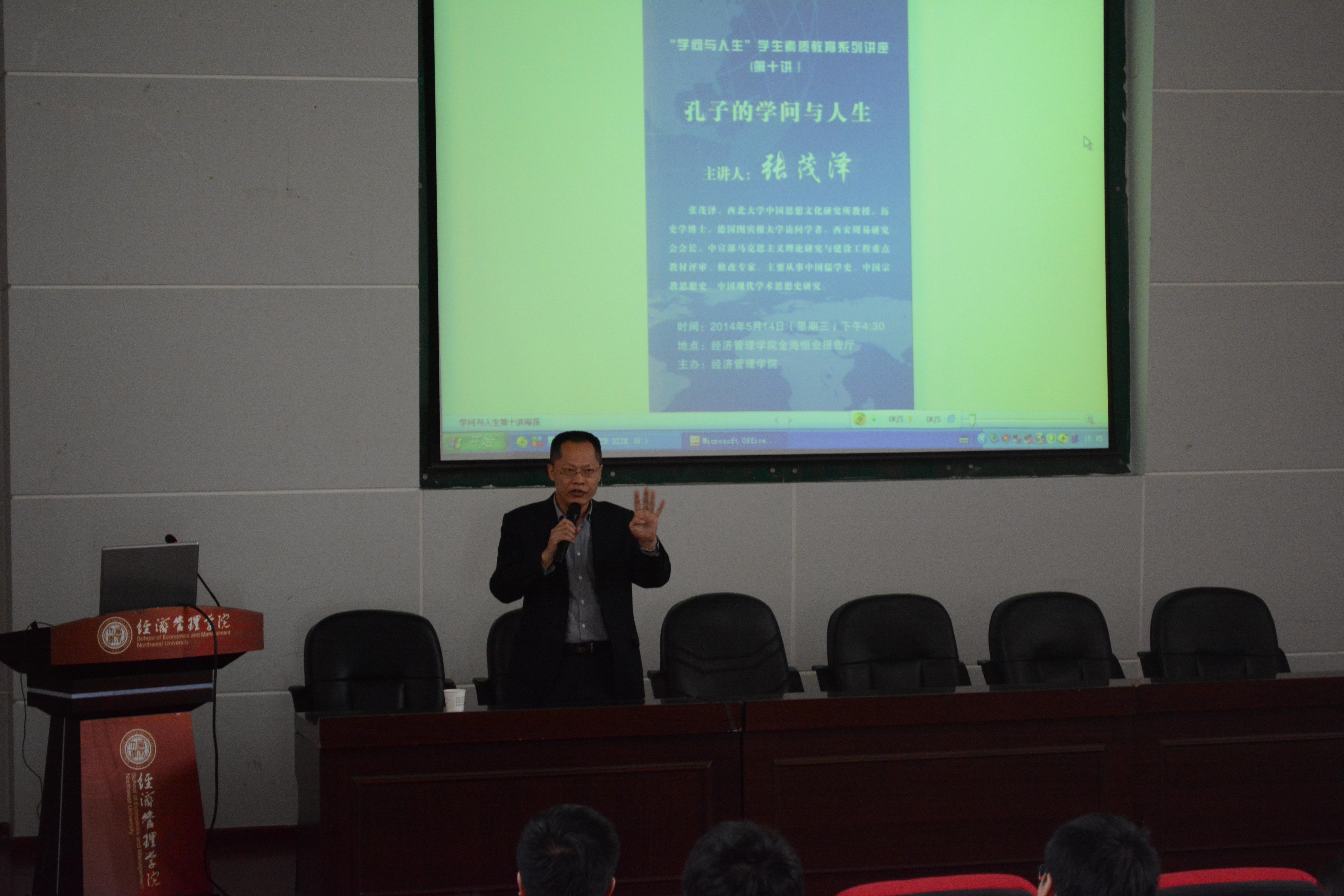 5月14日下午4:30,永利官网“学问与人生”素质教育系列讲座第十讲在金海恒业报告厅举行,永利官网中国思想文化研究所张茂泽教授应邀作了题为《孔子的学问与人生》的讲座。讲座由院党委书记李国良主持,副书记李一凡、部分辅导员和本科生共200余人到现场聆听了报告。