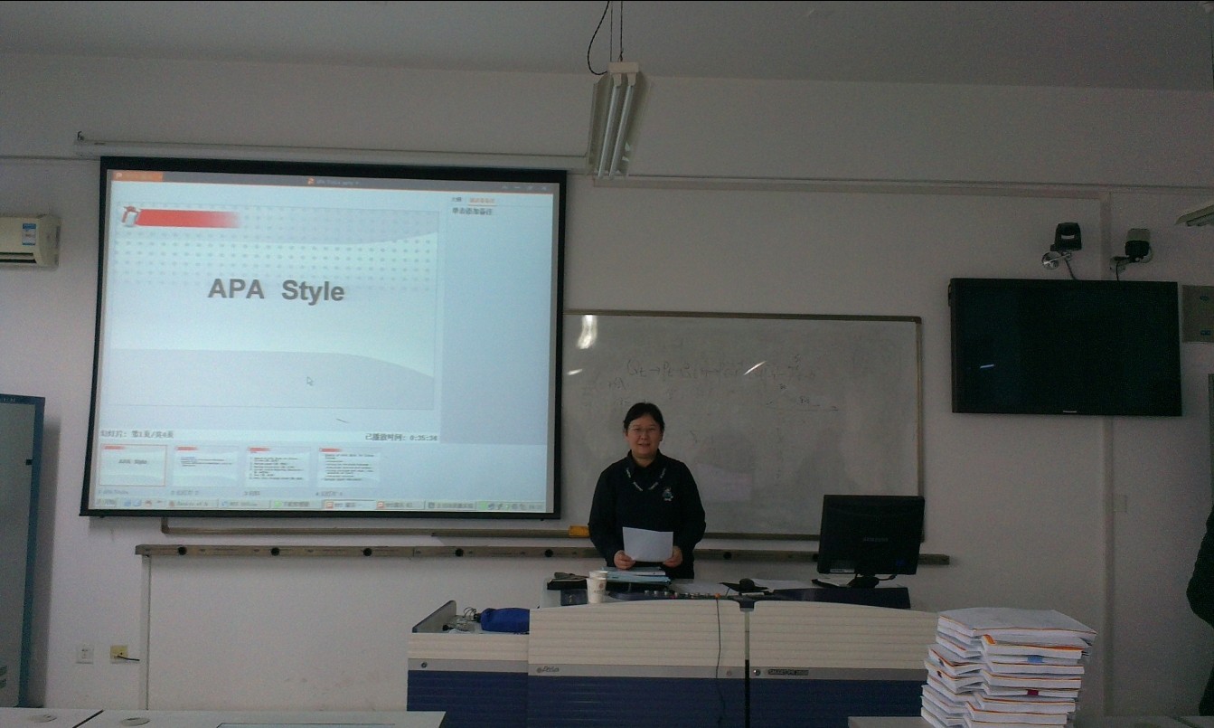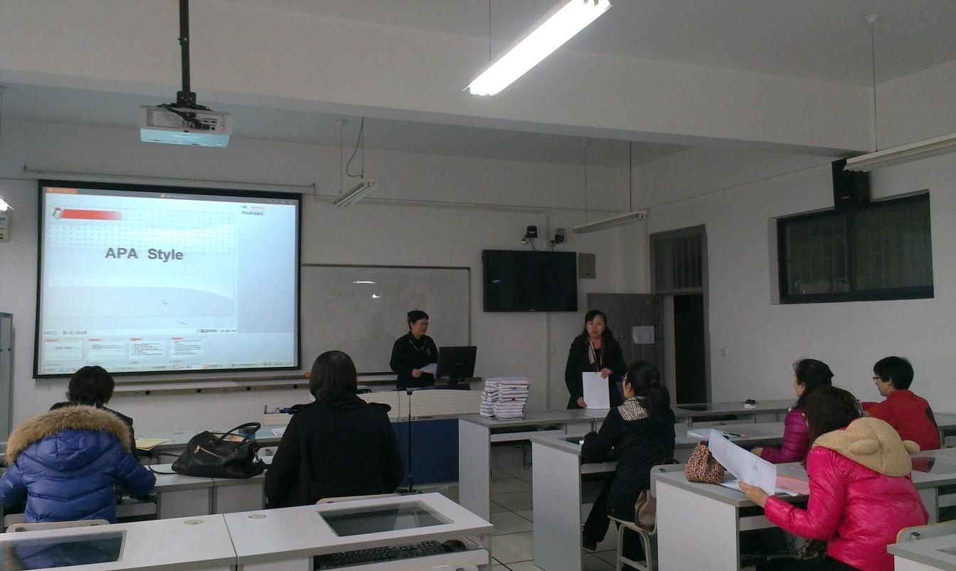 2014年3月5日永利yl23411no1教师学术沙龙2014年第2期在长安校区永利yl23411no1远程实验室(8212)举行。本期学术沙龙的主题是“国际社会科学学术写作规范——APA格式”,由永利yl23411no1康蓉副教授主讲,何爱平教授主持,永利yl23411no1青年教师与博士生参加了本次学术沙龙活动。