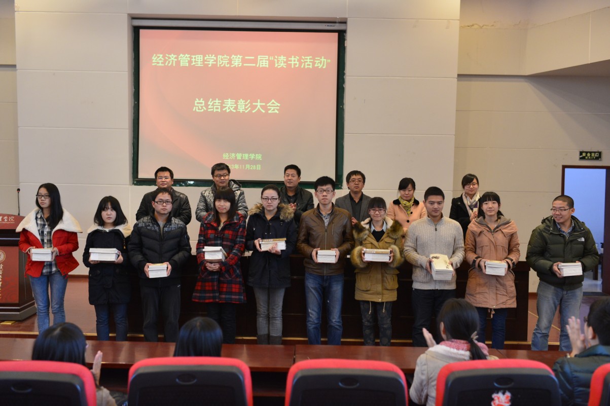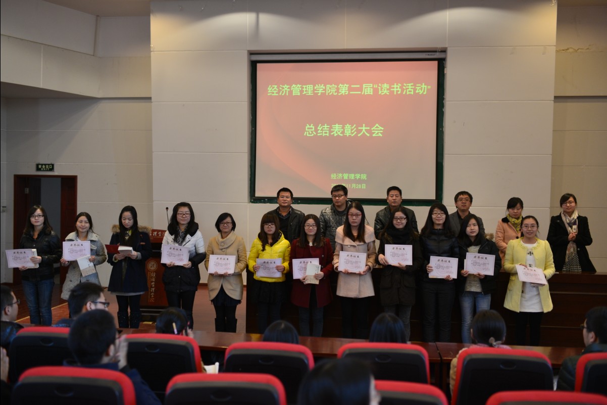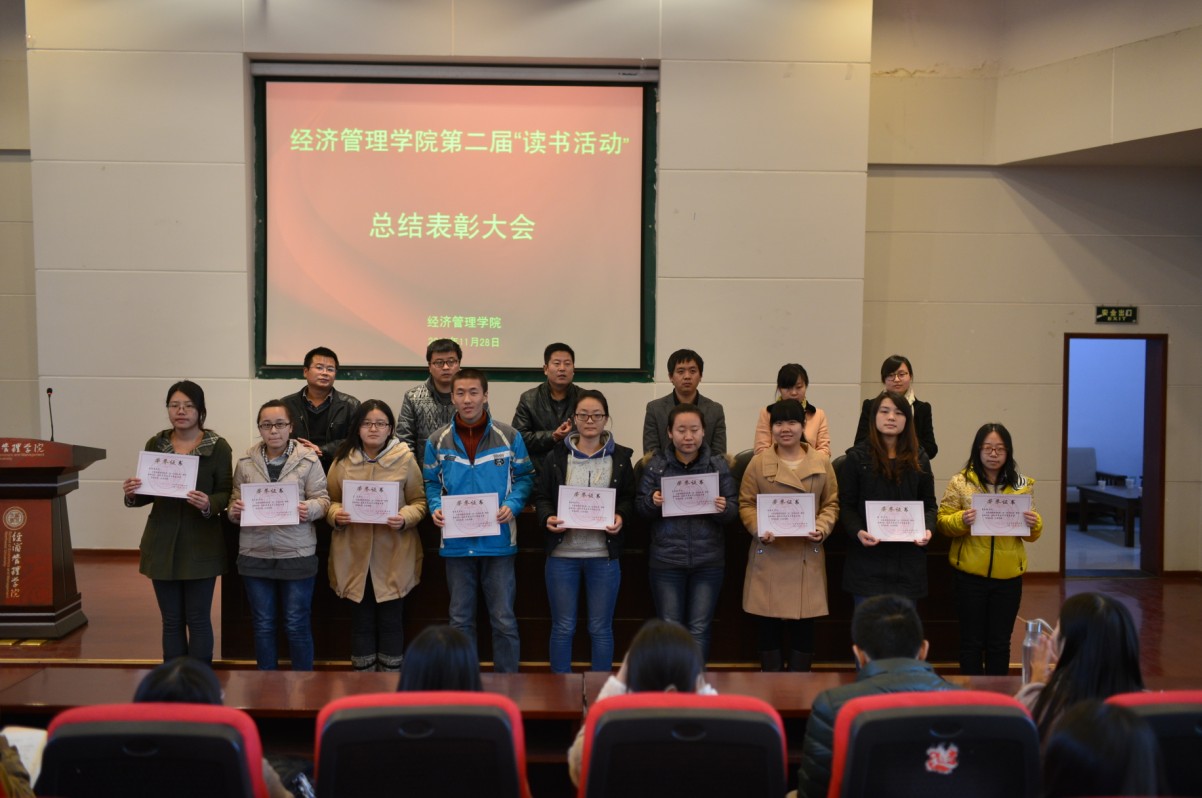 永利官网第二届“读书活动”于5月中旬开始,10月中旬结束。其中5月至7月为阅读交流阶段,8月为实践调研阶段,9至10月为成果提升和总结阶段。院学生工作领导小组根据“读书活动”方案要求,以“导师荐读”的方式邀请学院教授推荐经济类、管理类、人文经典类书籍各50本,向全院学生公布,并依据学生选读书目组建读书小组148个;选拔了24名优秀研究生,给每个读书小组配备一名研究生担任指导员,帮助本科生读透读懂选读书目;同时邀请青年教师不定期为同学进行读书辅导,为同学们答疑解惑。在为期五个月的活动中,各读书小组围绕着“读书引领优良学风”主题教育活动、“网上读书会”活动。“我的大学”读书报告会活动、读书心得交流评比活动、“读书与实践”调研报告撰写活动等五项主题活动,共开展读书活动390次,通过微博、人人等网络媒体发布读书活动信息1195条,撰写读书心得3585份,调研报告148份。活动中评选出的“优秀读书心得”将陆续在《经管学院报》、《经济视窗》等杂志报纸上刊登,并汇编成册。部分调研报告现已直接转化成为永利yl23411no1“大学生创新创业训练计划”项目。