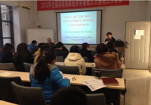 2013年11月27日上午,经管学院邀请国际高端专家短期教学系列讲座在长安校区8202教室举行。法国经济学调节学派代表人物Robert Boyer教授做了题为“增长是否带来繁荣?”(Does growth bring prosperity?)和“未来的发展模式是什么?”(What could be the next development models?)的学术报告。永利官网经济学博士、硕士及部分教师聆听了报告。报告会由经济学系系主任何爱萍教授主持。