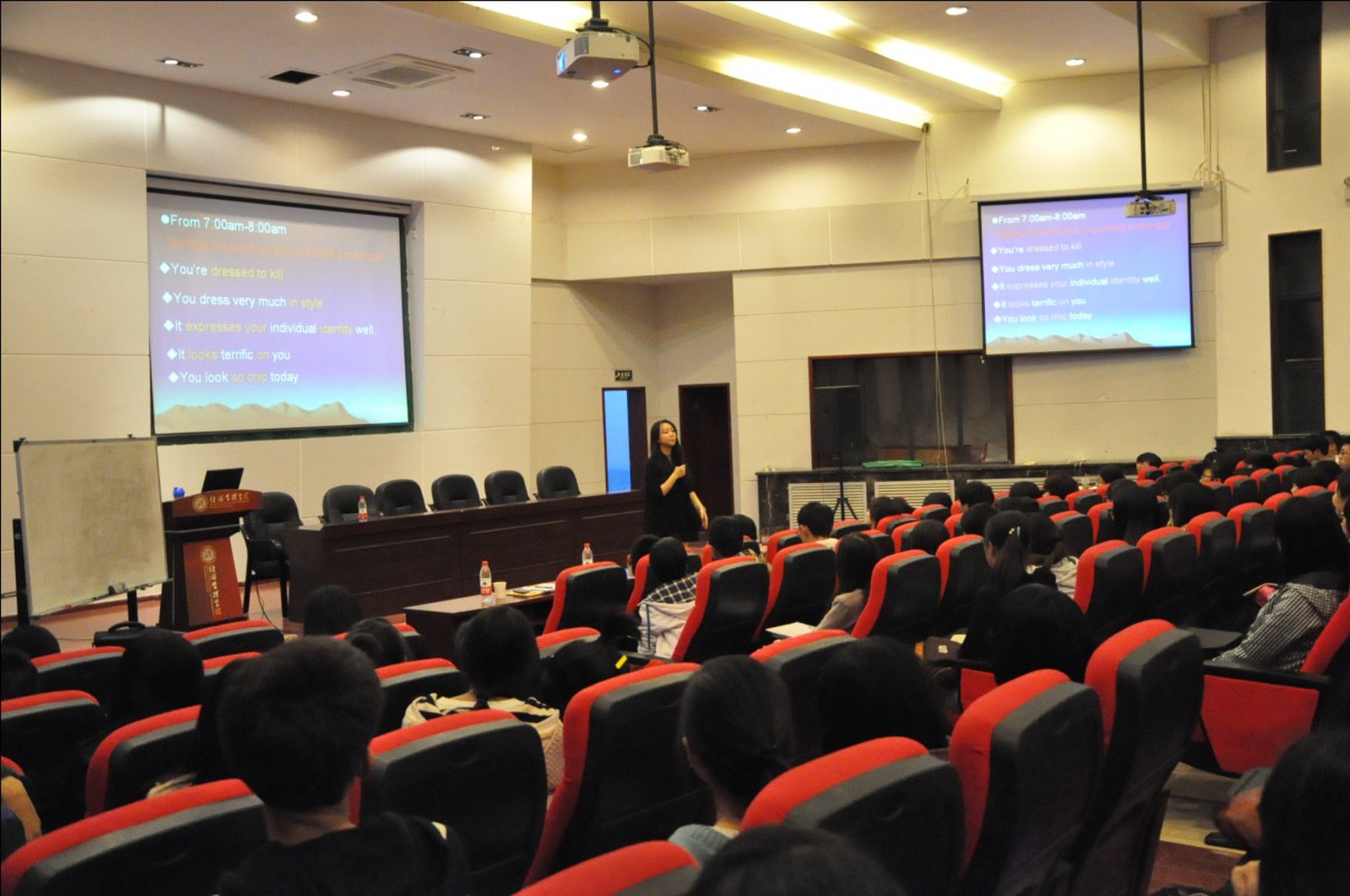 10月21日晚7点,永利官网“学问与人生”学生素质教育系列讲座(第八讲)暨第七届研究生学术月活动专家报告会之四在长安校区金海恒业报告厅举行,陕西翻译工作者协会理事,“同声传译委员会”副主任,原西安新东方综合部主管马维娜老师应邀作了题为《Passion & Initiatives》的报告。报告会由吴振磊副院长主持,院党委副书记李一凡、部分教师、博士生、研究生和本科生300余人到现场聆听了报告。