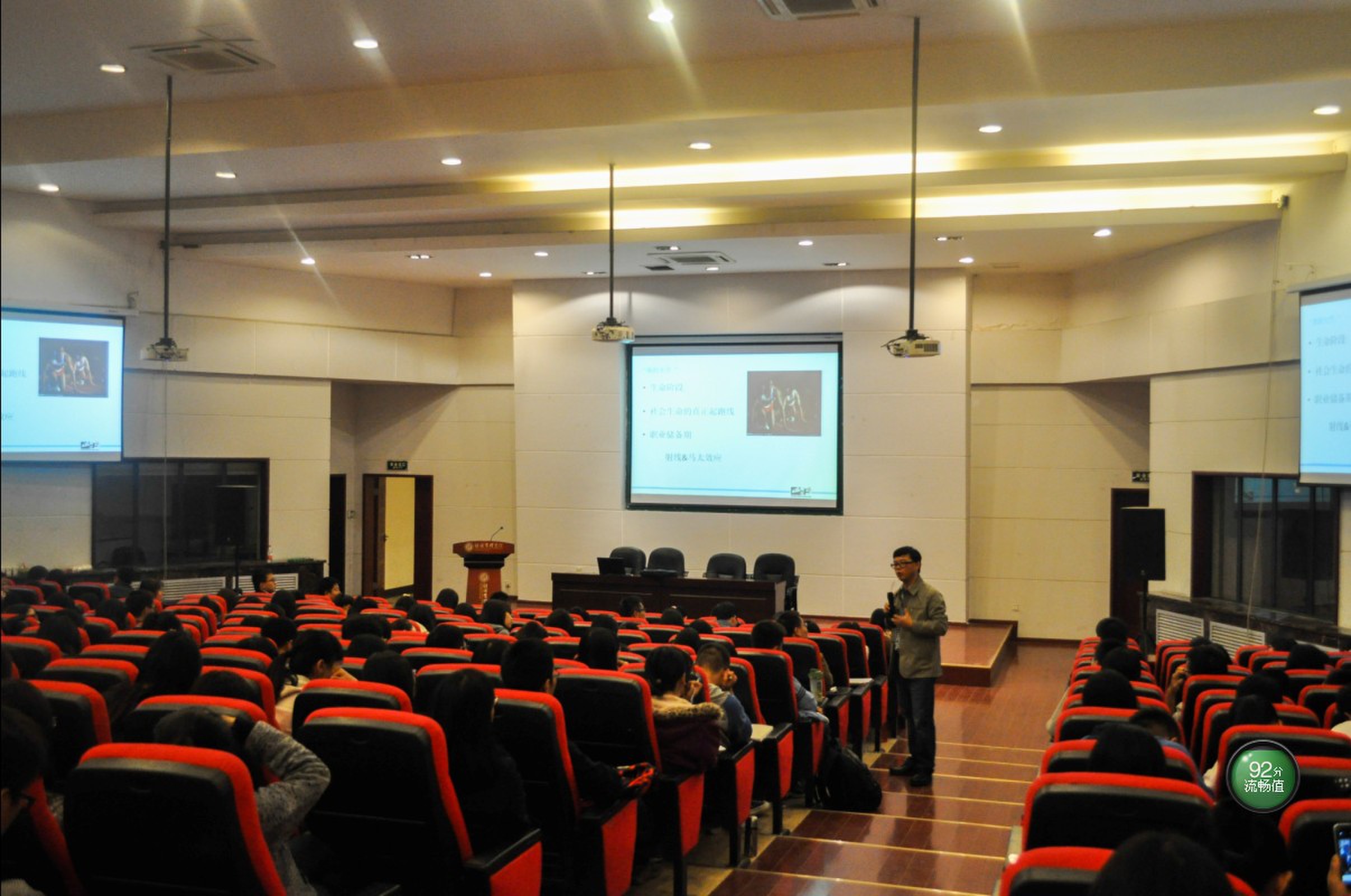 报告中,董老师结合自己的工作时间和学习体会,引导同学们对自己的未来职业规划进行思考,并向同学们提出了关于大学学习和职业选择的几项建议。首先,同学们应充分把握学校的资源,不仅要从书本、课堂中学习,还应从生活、活动、社会实践中学习各种技能,为将来的职业选择做好知识和能力的储备。董老师特别强调了大学学科间无界限这一点,鼓励同学们进行多方位的学习;其次,同学们要尽早确定自己的毕业目标与方向,根据毕业去向的不同,董老师逐一分析其应在大学期间锻炼以及需要掌握的技能等;最后,他告诉同学们应积极面向市场,全面了解企业需求,以市场为导向来发展提升自己。提问环节中,董老师耐心回答同学们的问题,现场不时响起热烈的掌声。