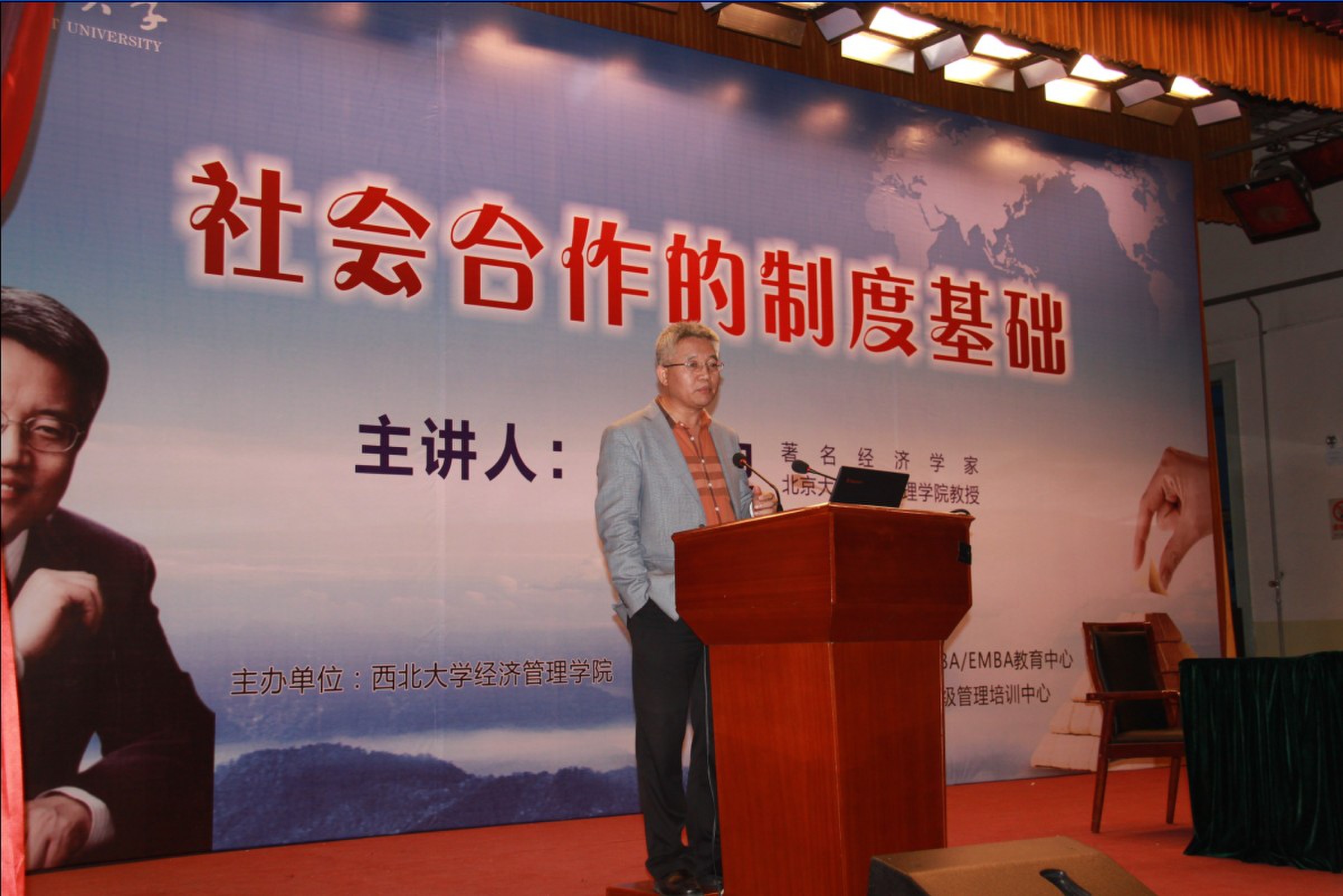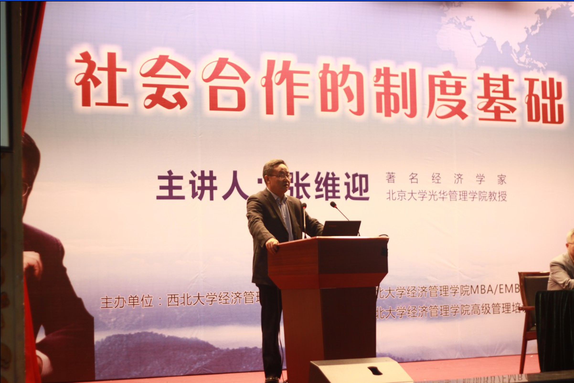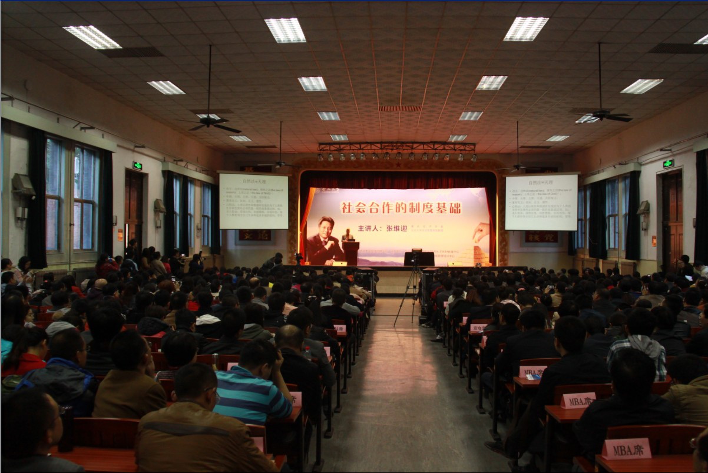 11月1日下午,经管学院“关中大讲堂”系列讲座之十四暨永利yl23411no1第七届研究生学术月专家学术报告之八在太白校区大礼堂举行。永利官网杰出校友、著名经济学家、北京大学光华管理学院教授张维迎应邀作了了题为《人类合作的制度基础》的学术报告。永利官网部分教师、MBA和EMBA及科学学位研究生600余聆听了报告。报告会由永利yl23411no1院长任保平教授主持。