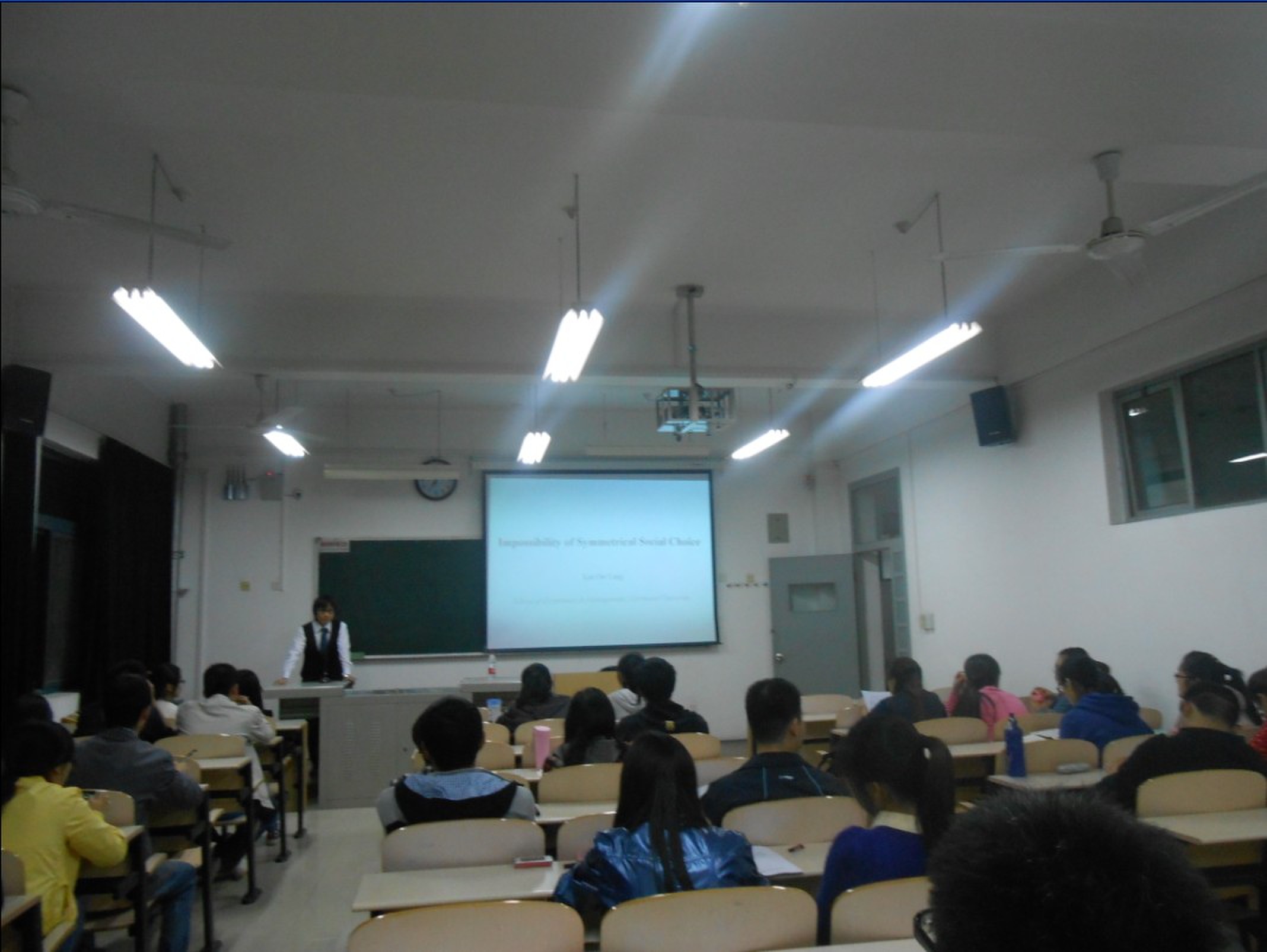 10月15日晚上7点,永利官网“经曰管云”系列学术论坛第二十一讲暨第七届研究生学术活动月学术讲座第五场在1309教室举行。永利官网数理经济与统计学系讲师欧阳葵老师作了题为《Impossibility of symmetrical social choice》的学术报告。永利官网80余研究生参加了此次报告会。