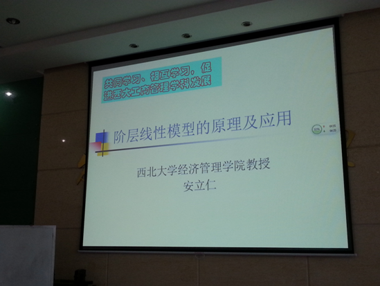 管理类青年教师学术沙龙2013年第2期(总第29期)于6月27日在永利yl23411no1长安校区8106教室举行。本次沙龙由工商管理系主任安立仁教授主讲,工商管理系、会计系、信息管理与信息系统系、旅游系多名青年教师及永利官网管理类博士生、硕士生参加本次沙龙。