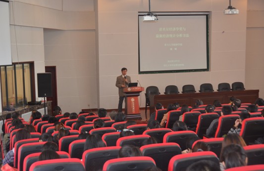 3月6日,日本香川大学经济学教授姚峰应邀来永利官网为师生作了题为《诺贝尔经济学奖与最新经济统计分析方法》的学术报告。学院部分青年教师和经济学系、数理经济与统计系学生200余人参加了活动。报告会由经济系主任何爱平教授主持。