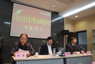 省委常委、省委宣传部部长景俊海在开班仪式上作了讲话。他对通过培训提高全省转制文化企业树立市场主体意识、确立市场发展战略和提高市场竞争能力寄予了厚望。他还在讲话中对参加培训的文化企业负责人如何做好陕西文化企业提出了三点要求:一是要充分肯定陕西文化产业改制的成果;二是要充分发挥陕西文化事业的发展;三是要深化改革开放,以发展解决企业在市场中遇到的各类难题。