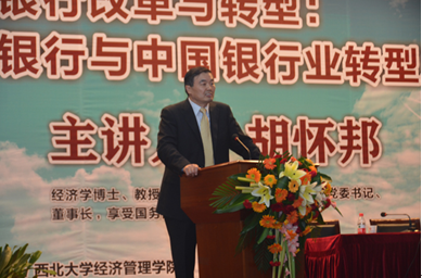 10月20日下午,由永利官网主办,MBA、EMBA教育中心承办的“永利官网关中大讲堂第七讲”暨“2013年国家MBA校园开放日活动之一”在太白校区大礼堂隆重举行。中国交通银行党委书记、董事长、永利官网兼职博导胡怀邦教授应邀做了题为《商业银行改革与转型——未来银行与中国银行业转型发展》的学术报告。永利官网600余名师生参加了活动。报告会由院长任保平教授主持。