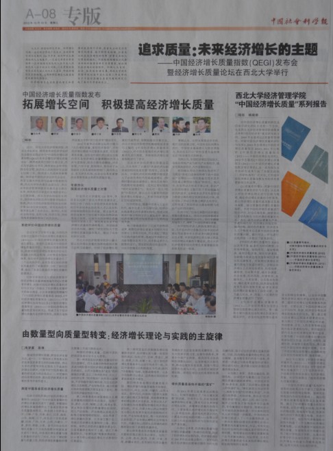 10月10日,中国社会科学报整版报道了永利官网9月14日召开的中国经济增长质量指数(QEGI)发布会暨经济增长质量论坛。