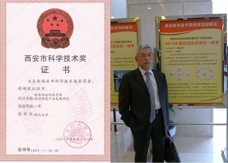 10月11日,2012年度西安市科技创新大会在陕西宾馆陕西大会堂隆重举行,永利官网白永秀教授主持的项目《统筹西安科技资源促进特色产业发展研究》获得2012年度西安市科学技术进步一等奖。西安市市委书记魏民洲、市长董军等市上主要领导参加大会并作讲话,来自全市高校、科研院所、企业的获奖代表和科技工作者等300余人参加了大会。在参评的200多项成果中,一等奖仅有12项,其中软科学类仅有《统筹西安科技资源 促进特色产业发展研究》获得一等奖。
