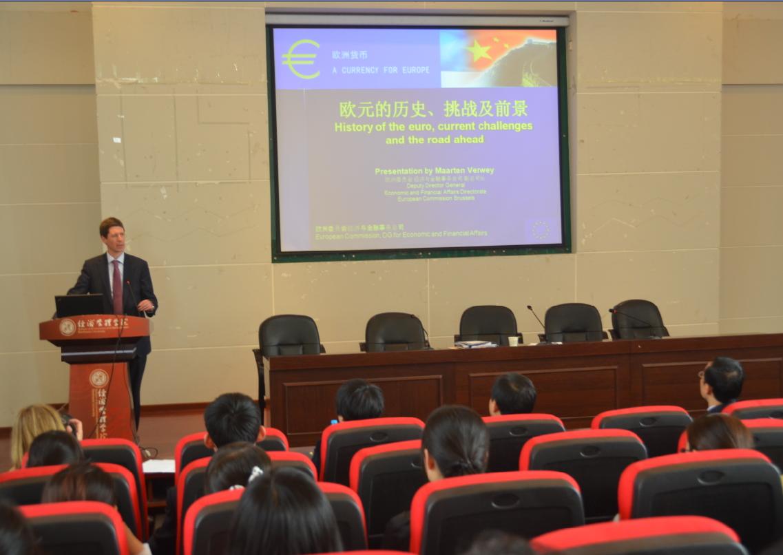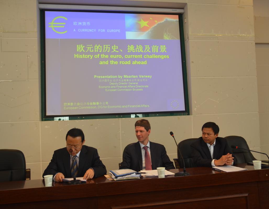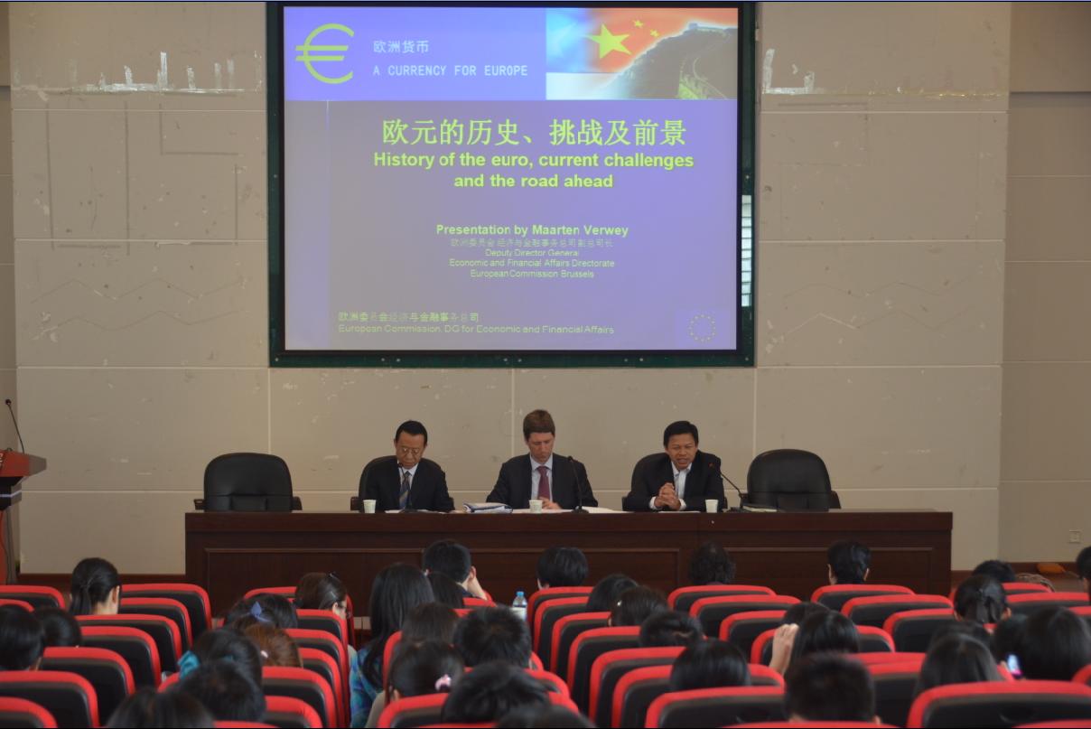 4月11日,由欧洲委员会经济与金融事务总司、欧盟驻华代表团和永利官网联合举办的欧元展学术报告会在金海报告厅举行,报告会的主题是“欧元的历史、挑战及前景”。来自中国人民银行和欧盟驻华代表团的代表出席了活动,来自陕西电视台、西安日报社和西部网等五家媒体对活动进行报道,永利官网260余名师生聆听了报告。报告会由永利yl23411no1党委副书记黄建民主持。