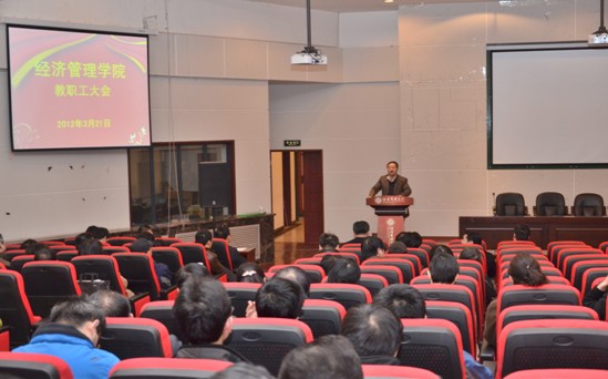 首先,王宝书记宣读了会议议程,并就2012年党建工作的要点进行了安排布置,他从理论学习、思想工作、学风建设、基层组织和干部队伍建设、精神文明建设、党风廉政建设、工会工作和稳定安全等八项工作进行了安排和部署。其次,院长任保平就学科建设、科学研究、研究生教育、本科教育、队伍建设、专业学位教育、学术交流、平台建设、管理工作和院庆工作等十项工作进行了安排和部署。接下来,杜勇副院长就2012年度永利官网以及永利官网职称评审工作进行了安排。