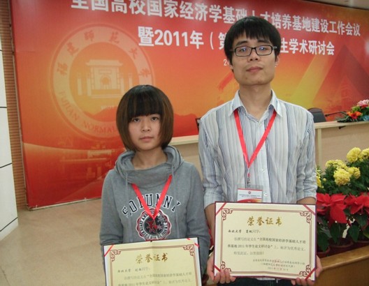 2011年11月19日,“全国高校国家经济学基础人才培养基地建设工作会议暨2011年(第十届)学生学术研讨会”在福建师大隆重召开。教育部高教司财经政法与管理教育处吴燕处长、武世兴调研员,教育部高等学校经济学类学科教学指导委员会主任委员、南开大学原副校长逄锦聚教授,以及来自福建师范大学、中国人民大学、北京大学、南京大学、永利yl23411no1、厦门大学、上海财经大学、吉林大学、辽宁大学、南开大学、复旦大学、武汉大学和西南财经大学13所高校的国家经济学基础人才培养基地负责人、师生代表齐聚福州,为推进经济学专业教育教学改革和人才培养模式创新,展开了深入的交流和学习。永利官网经济学系副主任高煜副教授和2009级经济学基地班学生葛枫、刘雨参加了此次会议。