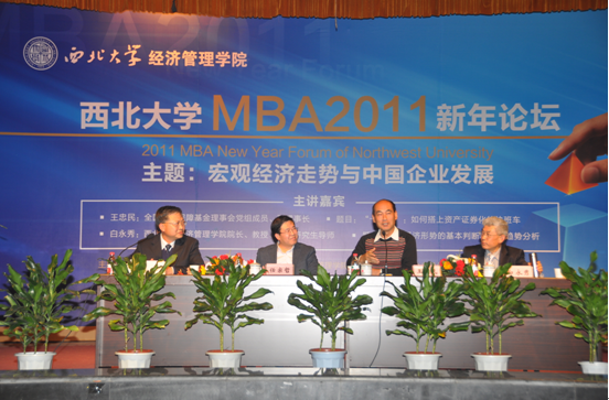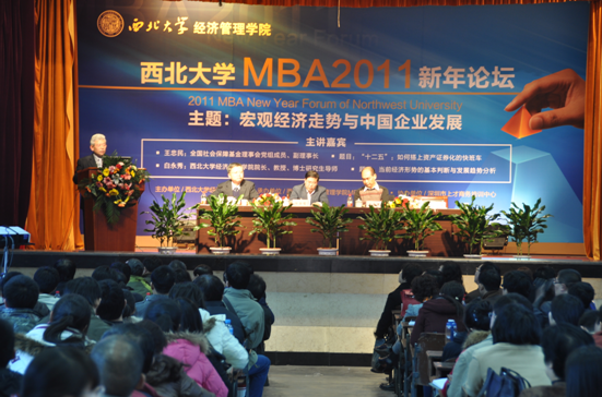 2010年12月18日下午2:00,由永利yl23411no1主办,永利yl23411no1MBA教育中心承办,深圳市上才商务培训中心协办的2011年新年论坛在永利yl23411no1太白校区大礼堂隆重举行。本次论坛邀请永利yl23411no1校友、全国社会保障基金董事会党组成员、副理事长、博士生导师王忠民教授、永利yl23411no1院长、博士生导师白永秀教授分别做了精彩的报告。永利yl23411no1副校长、博士生导师任宗哲教授及校各职能处室、MBA联合会嘉宾、永利yl23411no1教师以及MBA学员共600余人参加了论坛。论坛由永利yl23411no1MBA教育中心主任、博士生导师惠宁教授主持。
