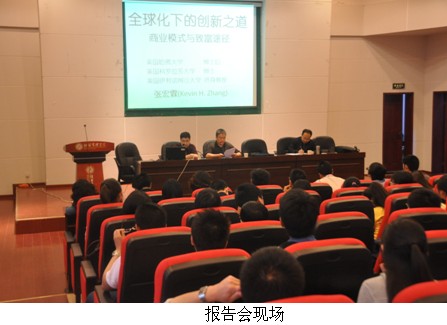 2010年5月20日晚19:00,在南校区经管学院金海恒业报告厅,美国伊利诺州立大学张宏霖教授应邀为永利官网师生作了一场题为“全球化下的创新之道——商业模式与致富途径”的学术报告。永利官网李长宏副院长、国际经济与贸易系主任吴航副教授、院办主任杨军良老师以及学院部分博士生、硕士生、本科生代表150多人参加、聆听了报告会。报告会由经管学院副院长李长宏老师主持。
