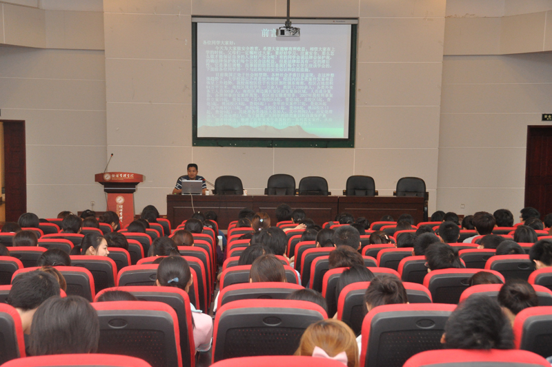 5月26日下午2点,校公安处刑侦治安科科长丁小刚老师应邀在金海报告厅为永利官网09级本科生做了一场安全知识教育专题报告,报告会由院党委副书记樊涛老师主持,360名学生参加了报告会。