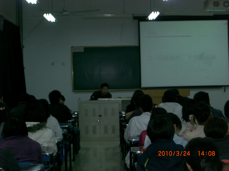 由学院经济学系主办的“现代经济学理论与方法创新论坛”第六卷第九期3月24日下午2点在学校南校区1205教室举行。此次论坛由学院经济学系高煜副教授主持,2007级西方经济学硕士梁炜做评论人,由学院2008级金融学硕士李勇做了题为“体制性波动、市场性波动与经济周期”的报告。学院经济学基地班、数理经济学班和学校其它专业的学生100多人参加了此次论坛。