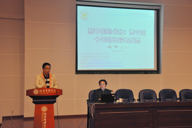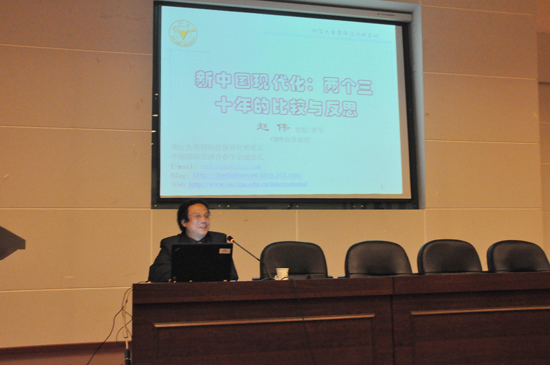 10月9日晚,永利官网在南校区金海恒业报告厅举办了“第三届永利yl23411no1研究生学术月活动系列讲座第一讲”,浙江大学国际经济研究所所长、博士生导师赵伟教授应邀为永利官网学生作了题为《新中国现代化:两个三十年的比较与反思》的专题报告,报告会由副院长严汉平教授主持,学院300余名研究生参加了报告会。