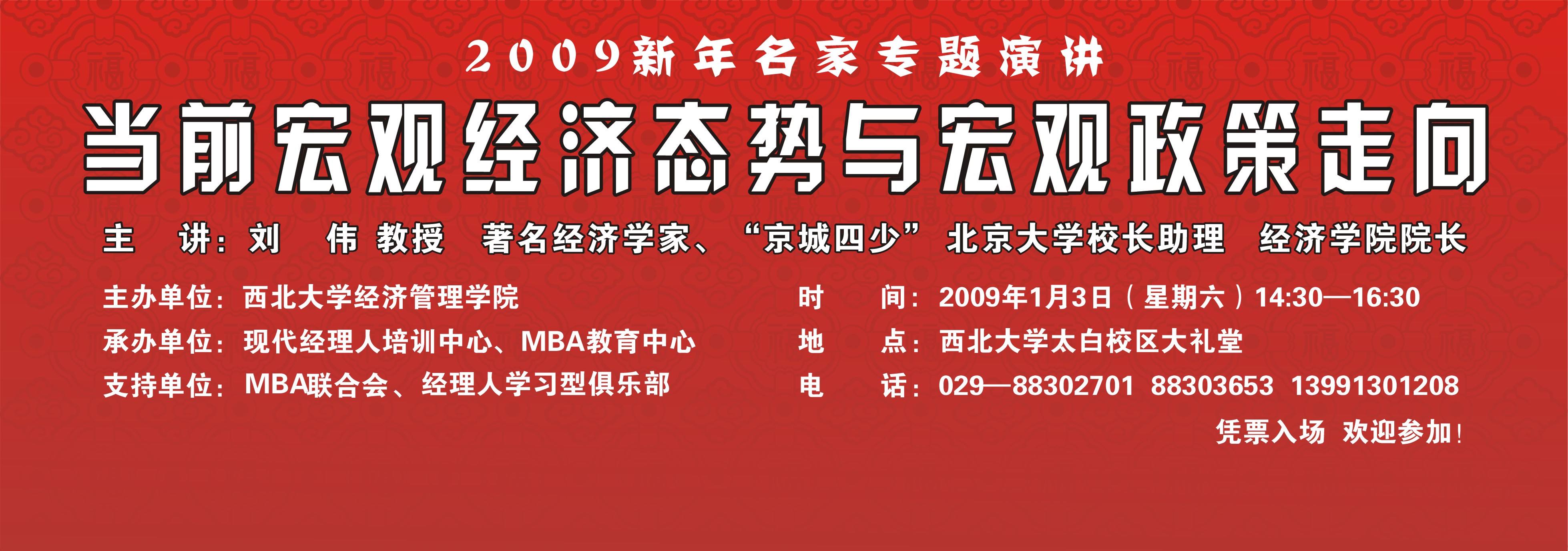 2009年新年名家专题演讲:当前宏观经济态势与宏观政策走向,2009年1月3日在永利yl23411no1太白校区大礼堂召开,欢迎参加。
