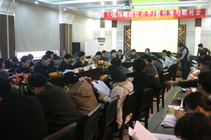 2007年12月8日,永利官网与高等教育出版社联合举办了《现代政治经济学》教材编写研讨会。北京大学经济学院副院长黄桂田教授、复旦大学经济学院党总支书记石磊教授、南开大学经济研究所所长柳欣教授、武汉大学经济学院副院长曾国安教授、《经济学家》杂志编审蒋少龙先生、高等教育出版社权利霞编审参加了本次研讨会。研讨会由任保平副院长主持,永利yl23411no1副校长任宗哲教授、教务处长王正斌教授到会讲话。永利yl23411no1院长白永秀教授、副院长赵守国教授、严汉平副教授以及教材编写组的成员参加了本次研讨会。在研讨会上,白永秀院长介绍了教材编写的思路和大纲,各位专家针对教材的编写思路和大纲进行了热烈的研讨。